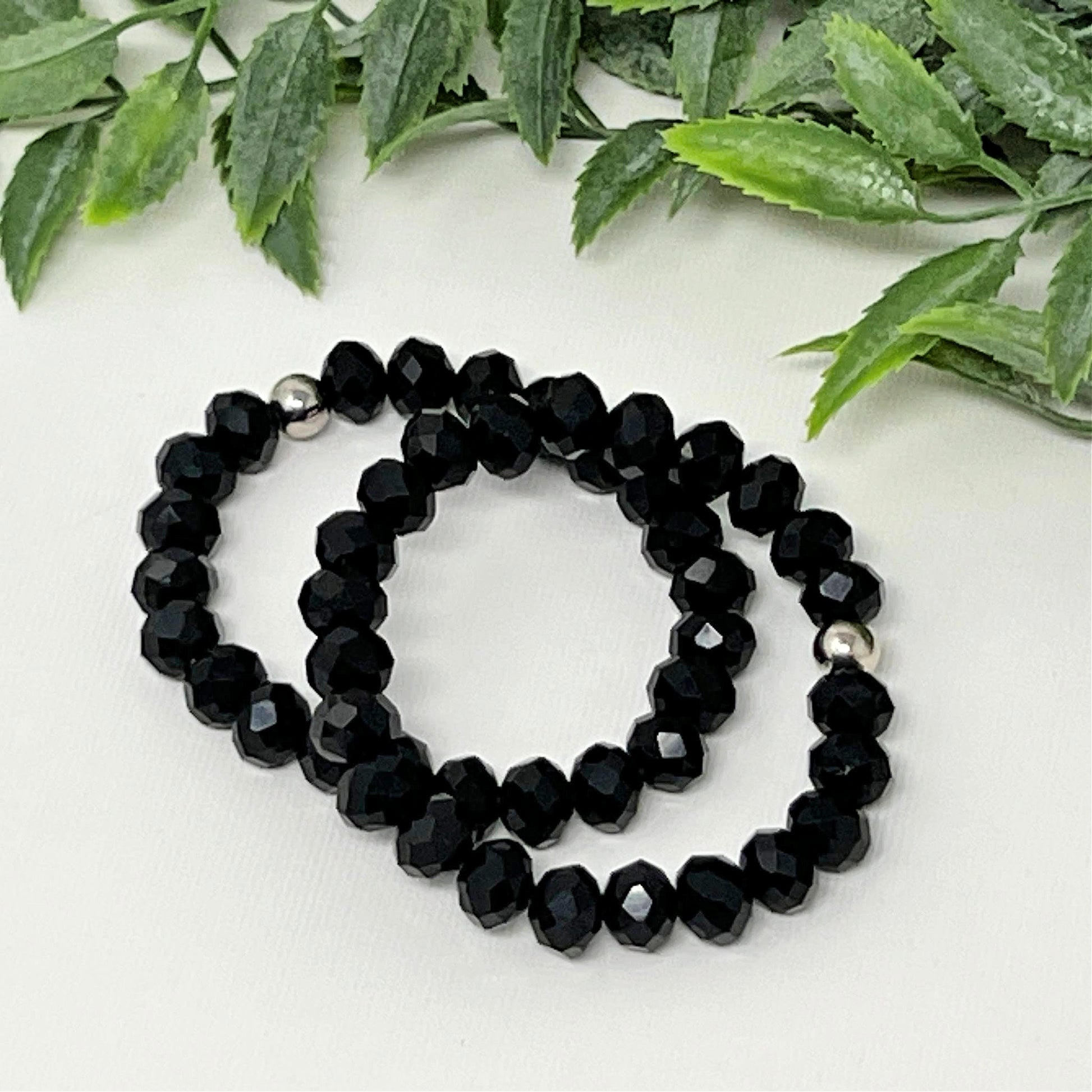 8mm Solid Black Faceted Crystal Bracelet
