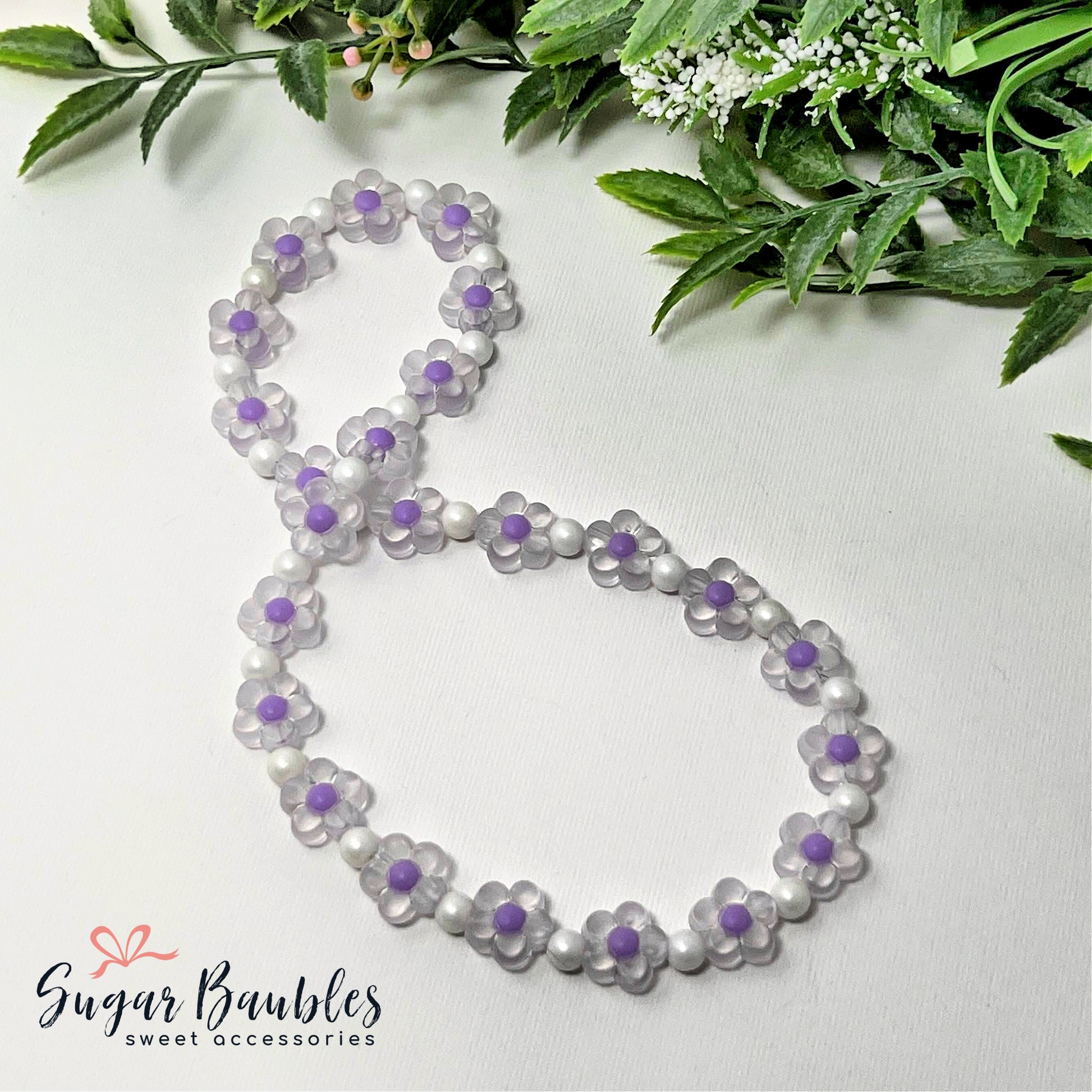 Purple Floral Stretch Necklace