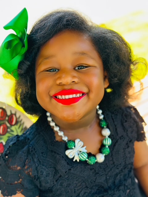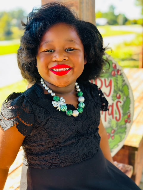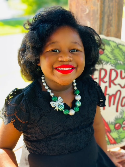 Silver & Green Bow Necklace